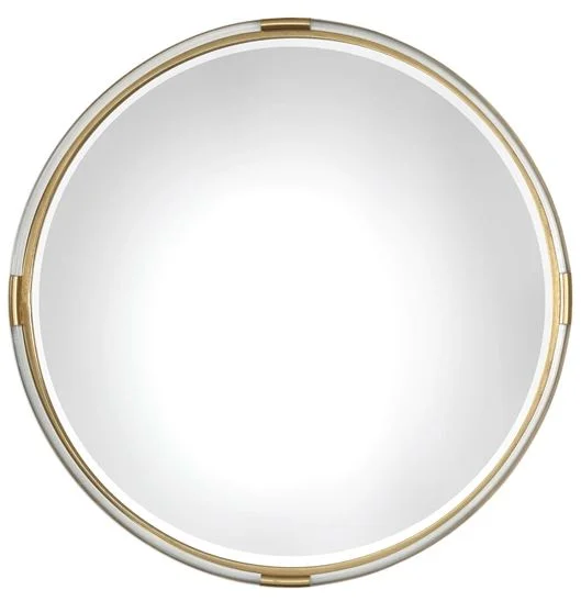 Gone are the days of a basic mirror glued to the wall. I like to add interesting mirrors in different shapes and different frame materials. This round mirror with a lucite and gold frame will look amazing hanging in front of the graphic back splash.